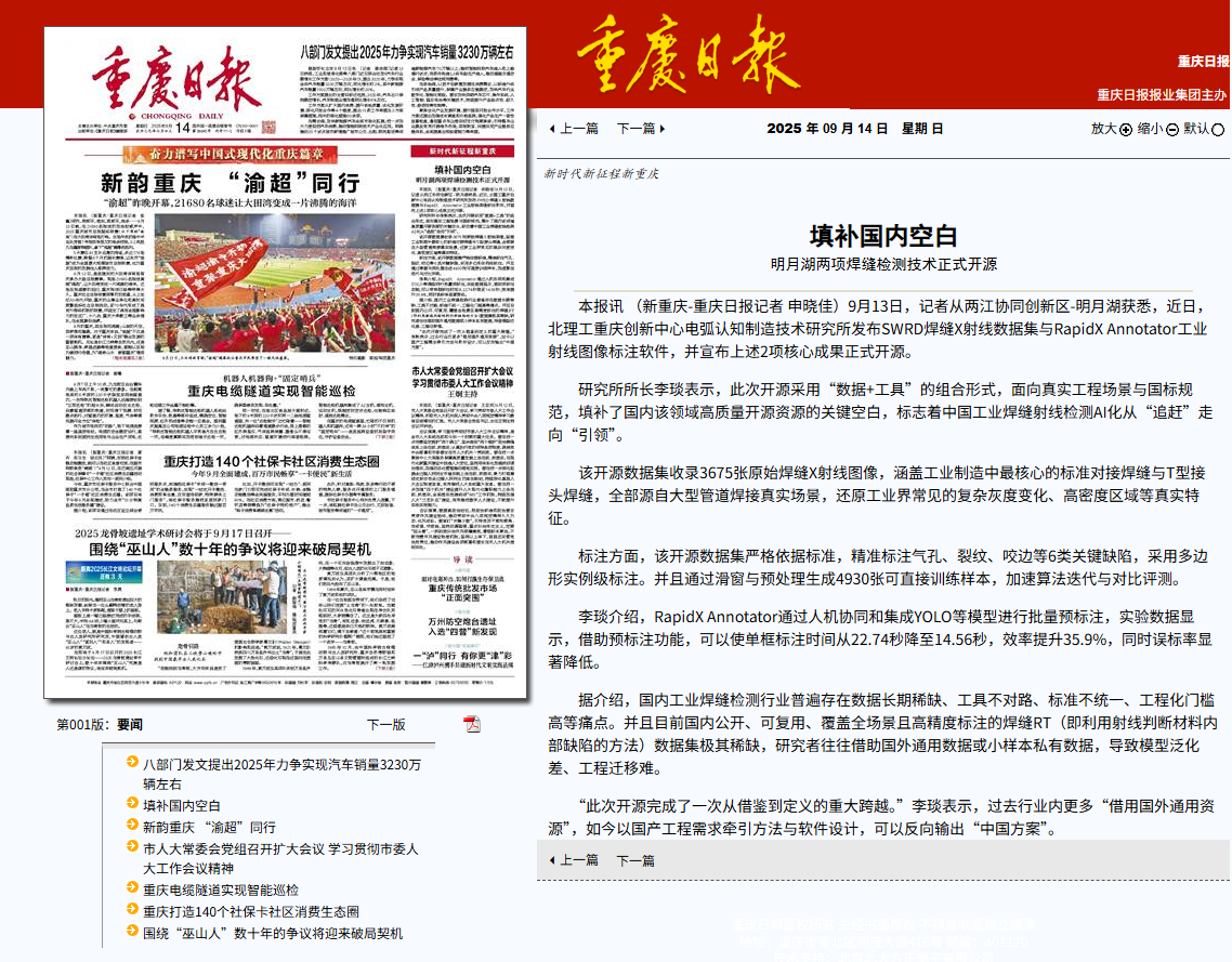 填补国内空白 明月湖两项焊缝检测技术正式开源